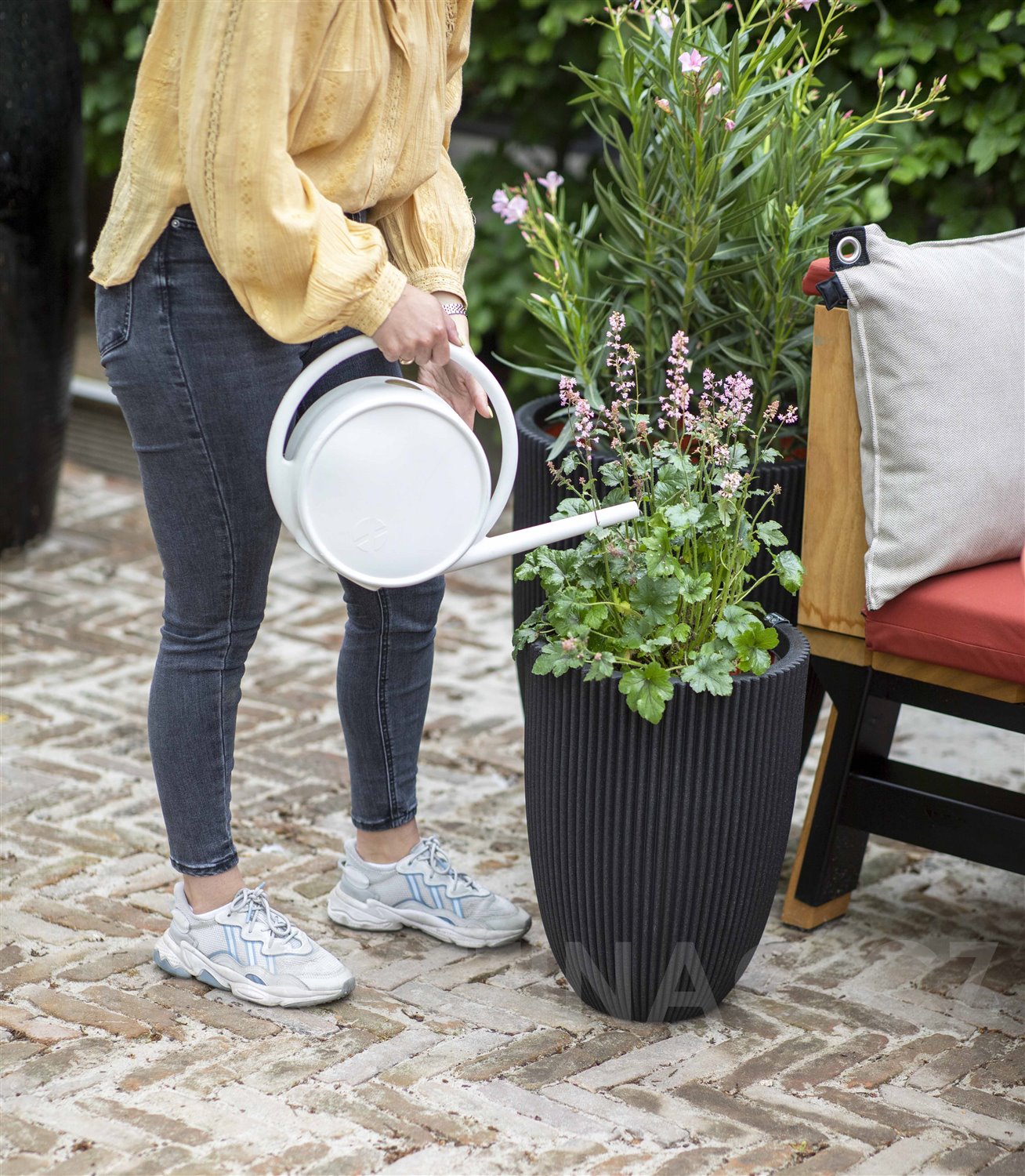 Oranžový vnitřek je odkazem na jejich původ, ale zároveň je izolační vrstvou, která chrání rostliny před horkem v létě a chladem v zimě. Díky této dodatečné vrstvě jsou květináče také mimořádně pevné, takže jsou odolné proti popraskání.