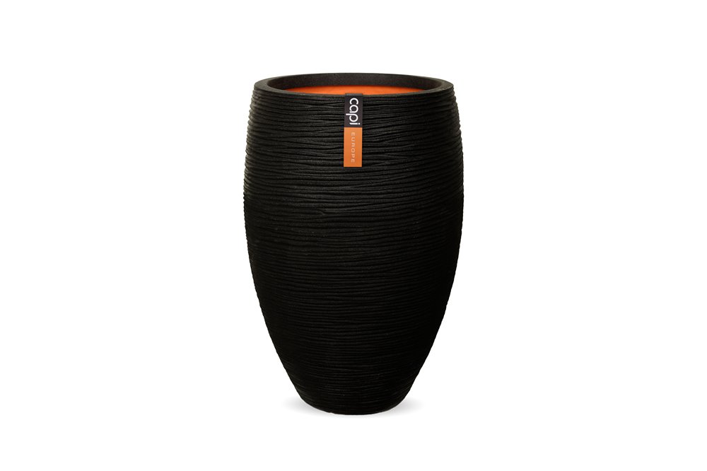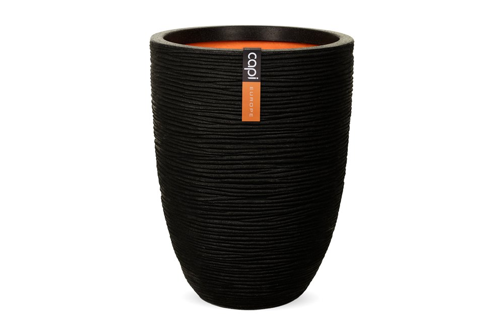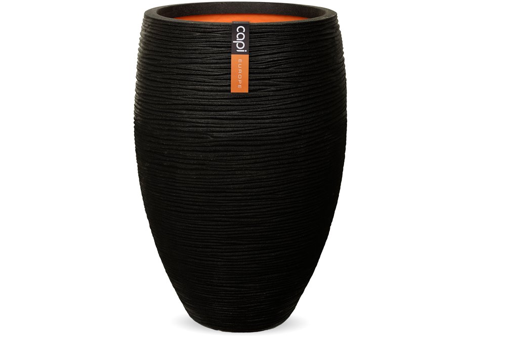 Květináč kulatý Rib NL, Capi, průměr 55 cm, výška 53 cm, recyklovatelná PE směs, barva black
