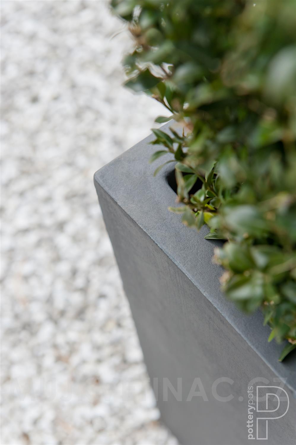 Venkovní květináč čtvercový Block L, Grey (barva šedá), kolekce Natural, kompozit Fiberstone, d 50 cm x š 50 cm x v 50 cm, objem cca 121 l