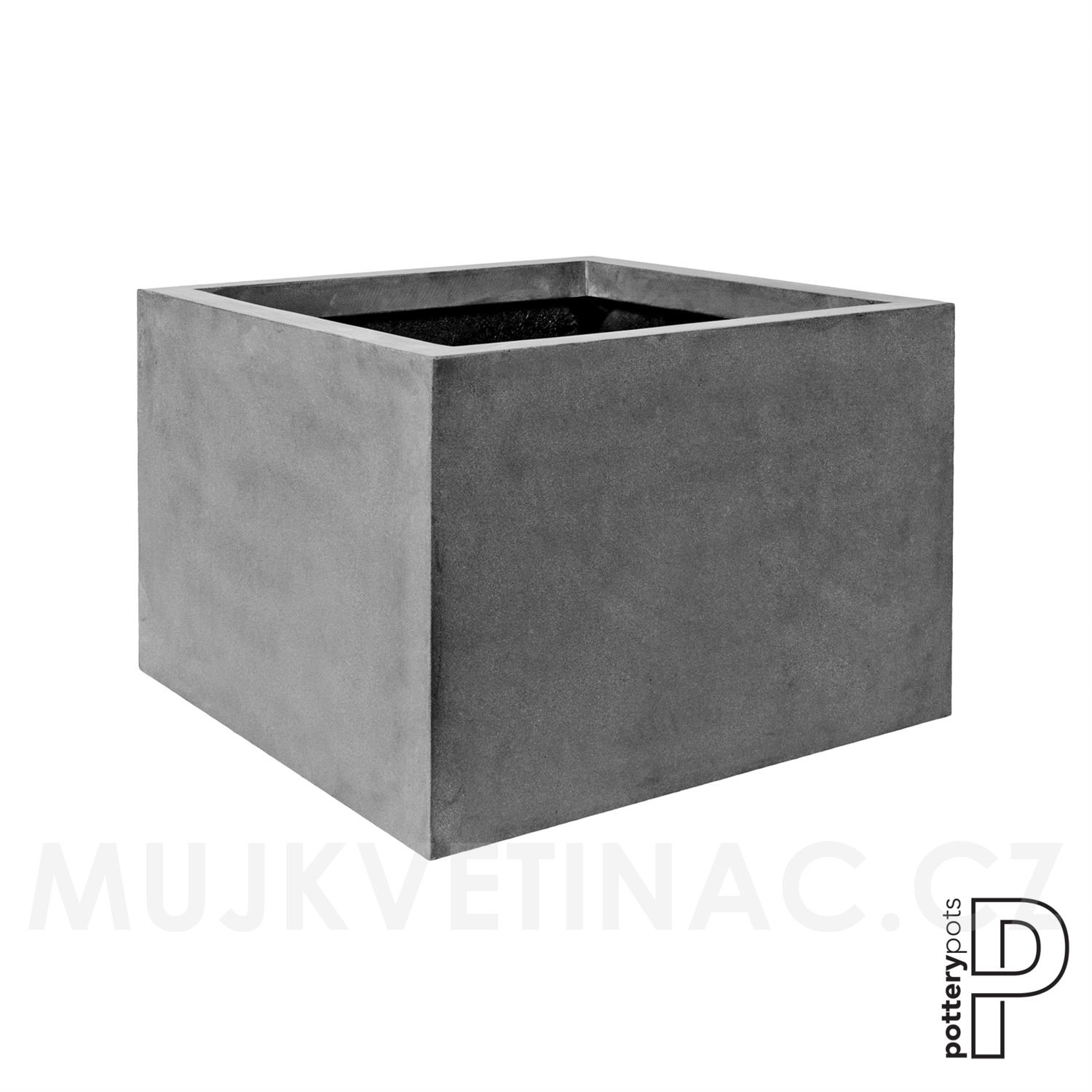 Venkovní květináč čtvercový Jumbo middle high XXL, Grey (barva šedá), kolekce Natural, kompozit Fiberstone, d 140 cm x š 140 cm x v 82 cm, objem cca 1568 l