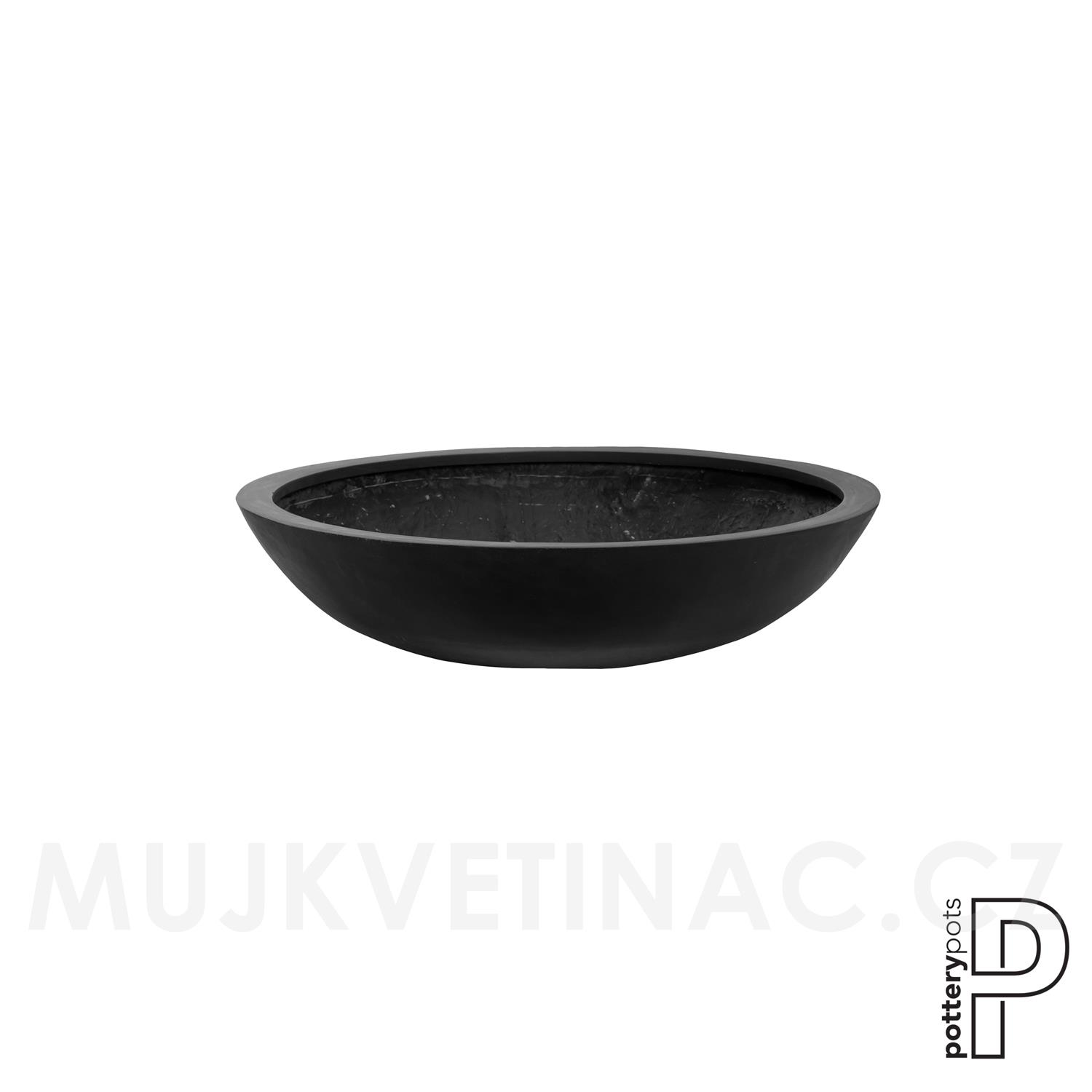Venkovní květináč kulatý Jumbo Bowl M, Black (barva černá), kolekce Natural, kompozit Fiberstone, průměr 85 cm x v 22 cm, objem cca 89 l
