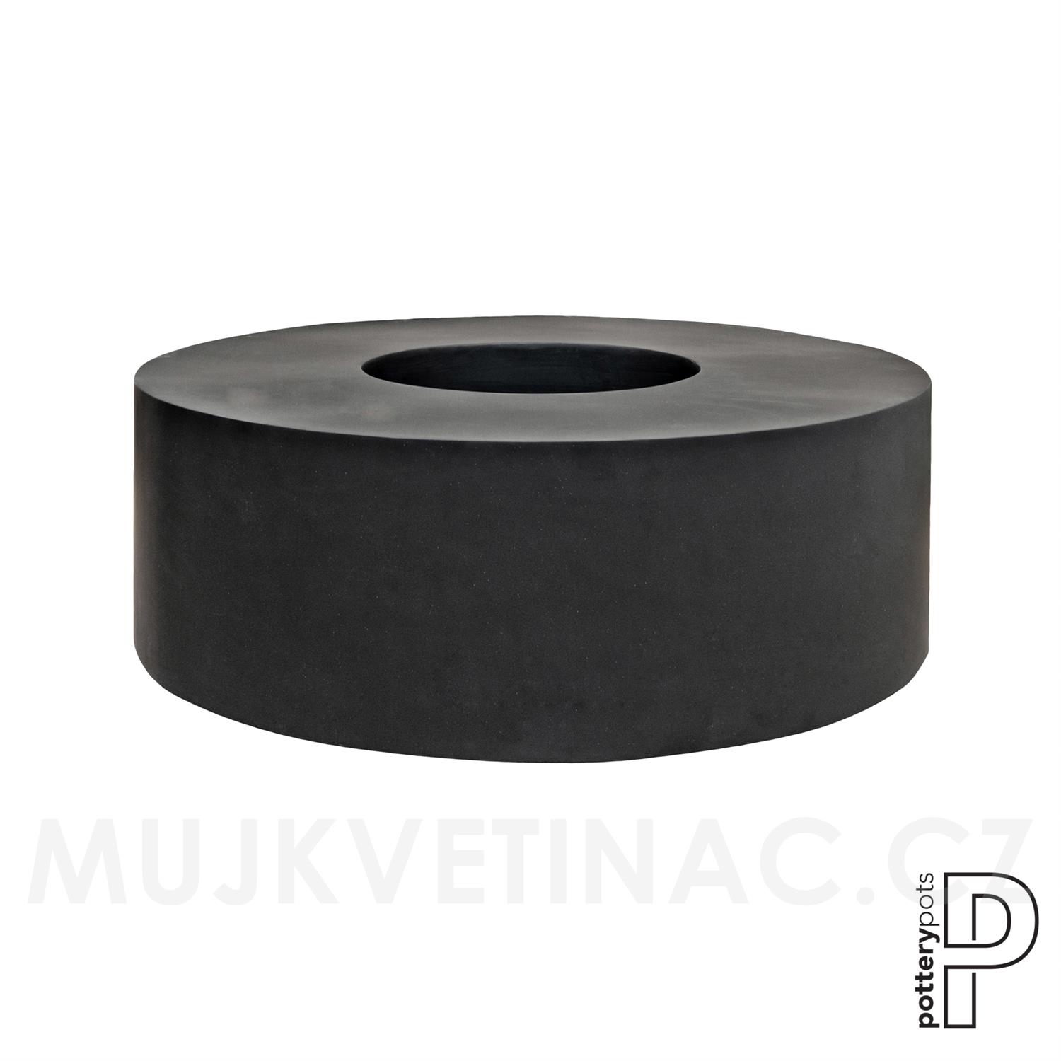 Venkovní květináč kulatý Jumbo Seating Round, Black (barva černá), kolekce Natural, kompozit Fiberstone, průměr 140 cm x v 47,5 cm, objem cca 116 l