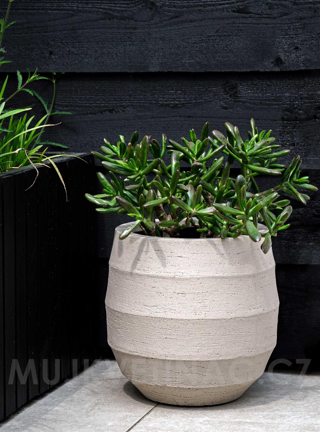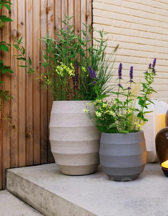 - Luxusně vypadající kompozitní květináč pro venkovní použití. Vyrobeno ze směsi zpevněné skelnými vlákny.