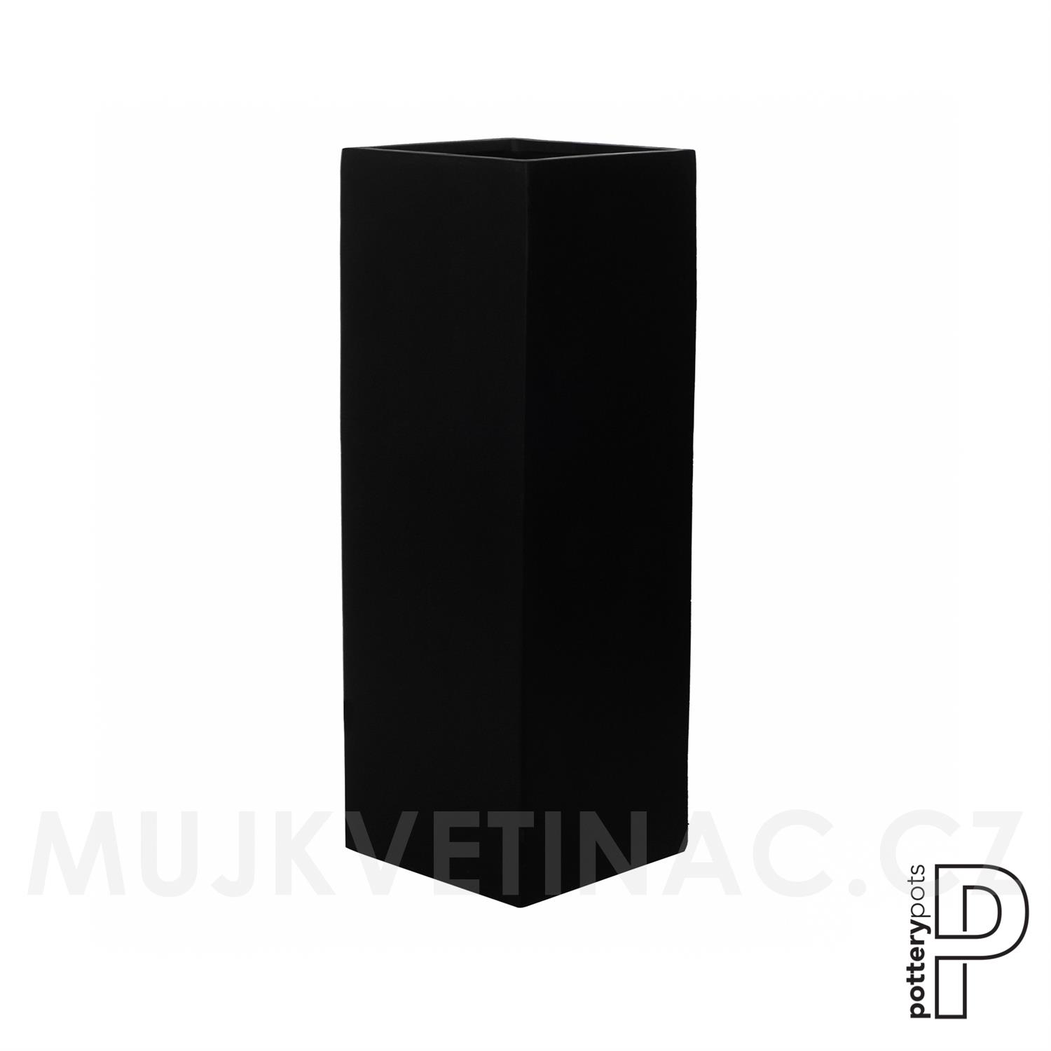 Venkovní květináč obdélníkový Yang, Black (barva černá), kolekce Natural, kompozit Fiberstone, d 35 cm x š 35 cm x v 100 cm, objem cca 117 l